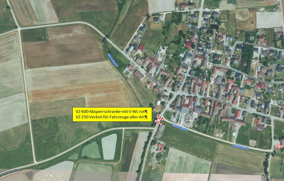 Es ergeht daher ein Verbot der Durchfahrt für Fahrzeuge aller Art.