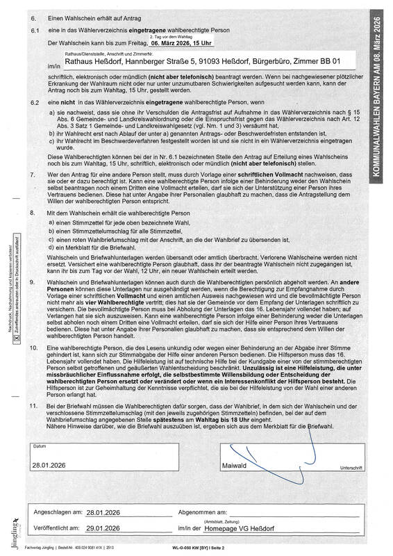 Kommunalwahl 2026: Bekanntmachung Heßdorf Einsicht ins Wählerverzeichnis & ...