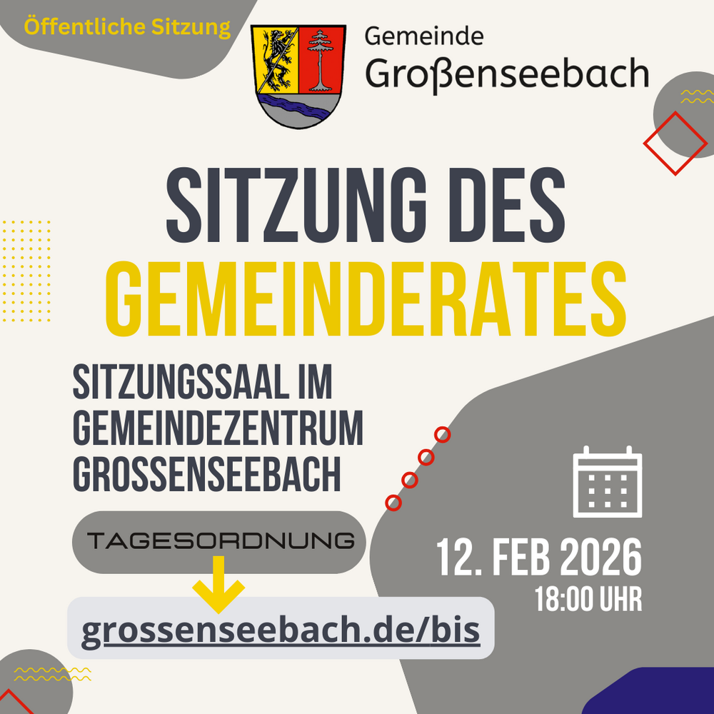 Die Gemeinderatssitzungen in Großenseebach finden i. d. R. am zweiten Donnerstag des Monats um 18 Uhr im Sitzungsaal der Gemeinde statt.